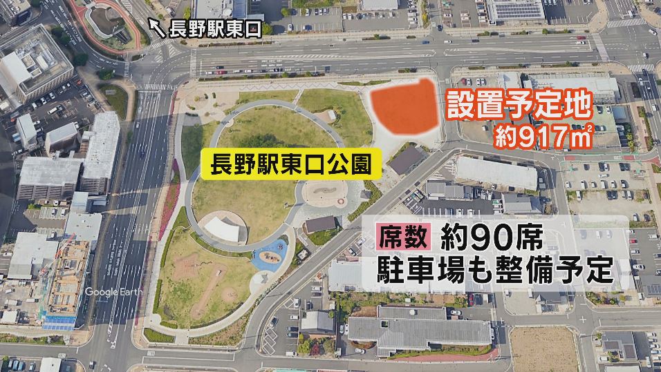 「長野駅東口公園です。公園内のこの場所に新たに飲食店の出店が決まりました」