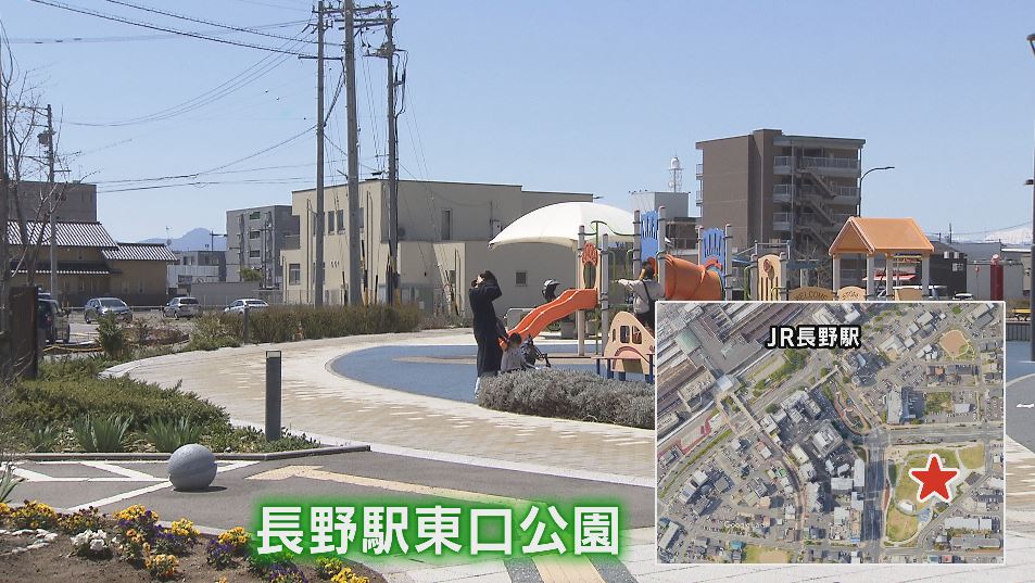 長野市の長野駅東口公園。駅からも近く親子連れに人気の公園です。