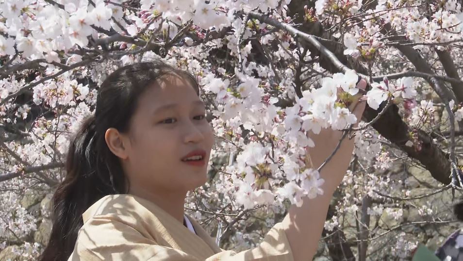 春らんまんの信州を外国人も満喫しています。日本の文化に触れてもらおうと桜がほぼ満開となった上田城跡公園でベトナム人の実習生が着物姿でお花見を楽しみました。