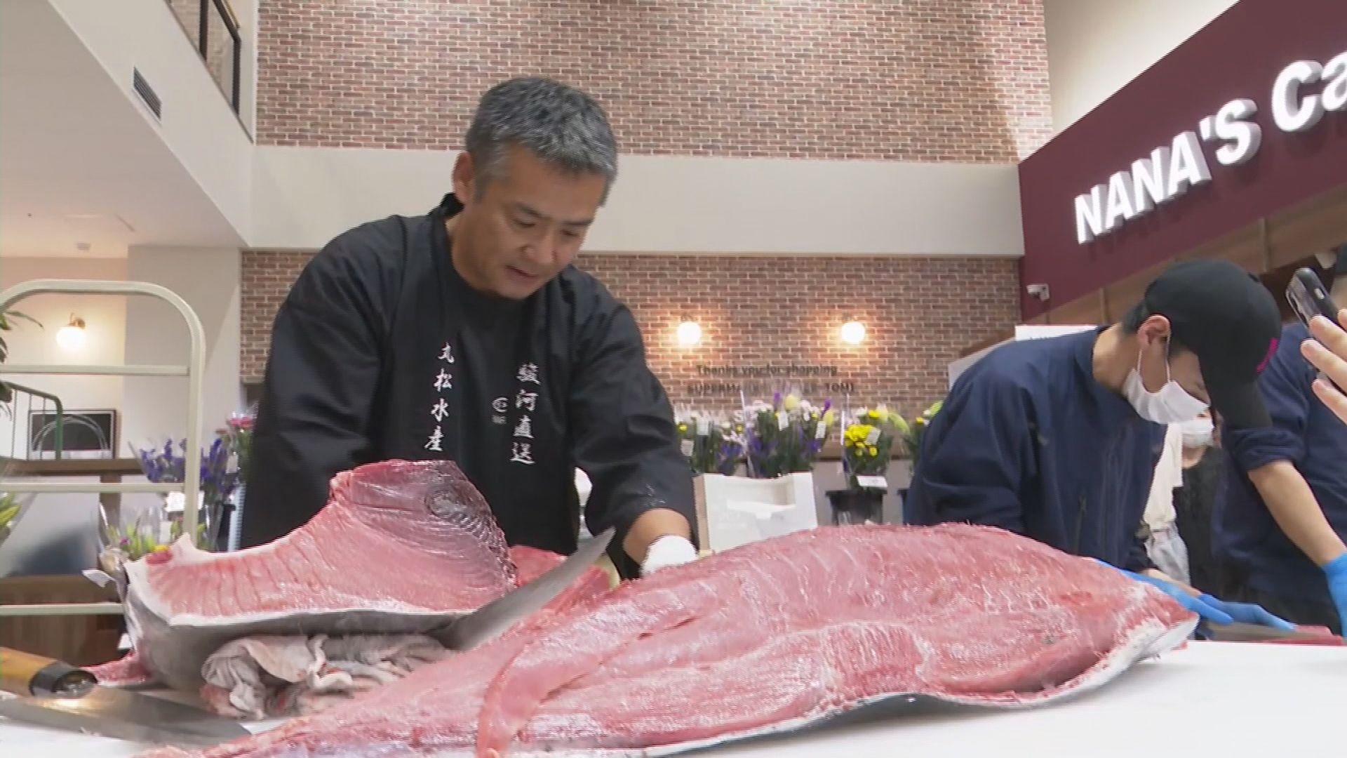 「こちらが背側ですね。こちらから取れるのは赤身と中トロ」