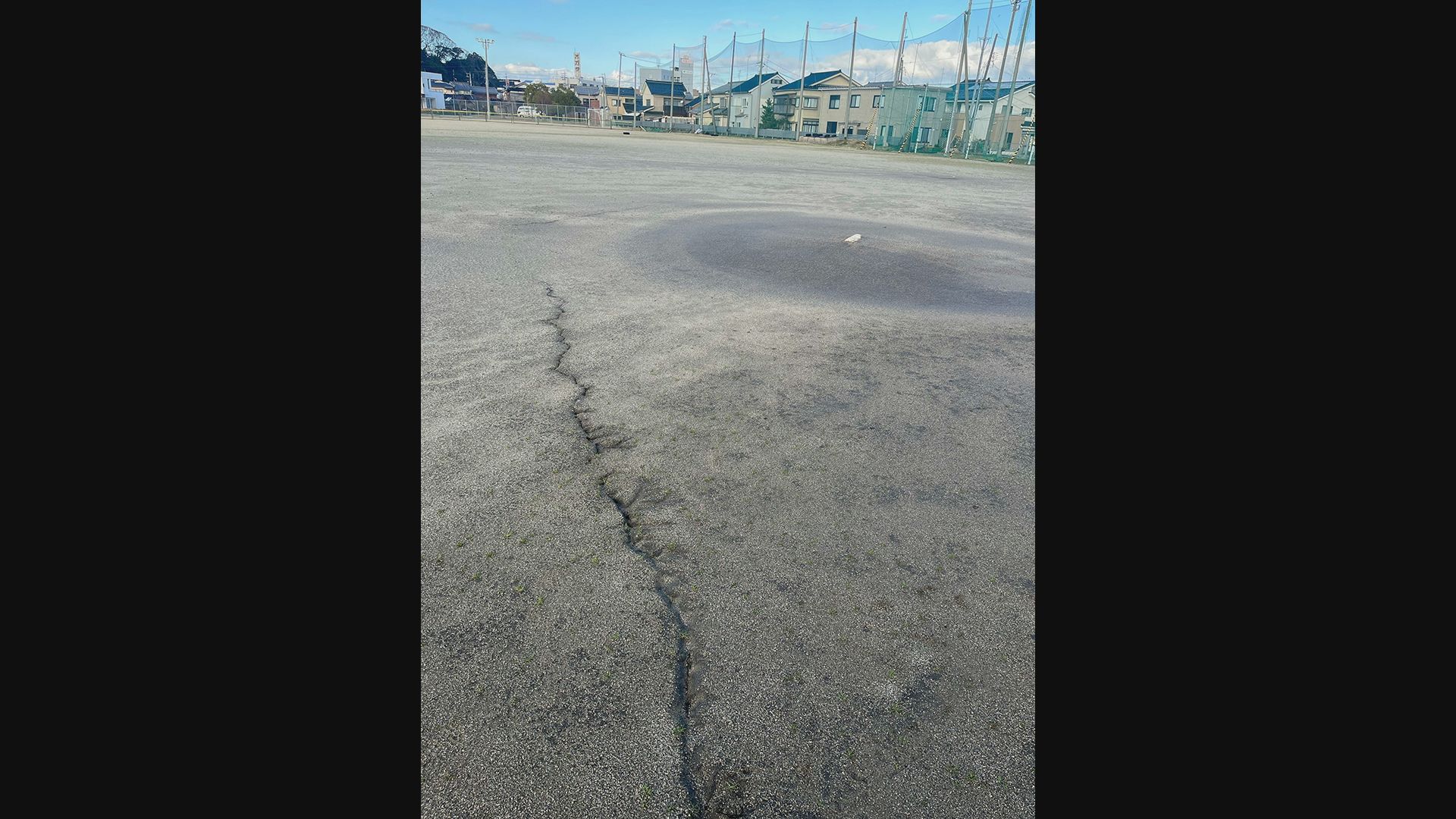 七尾高校(石川県七尾市)のグラウンの亀裂(提供:七尾高校野球部)