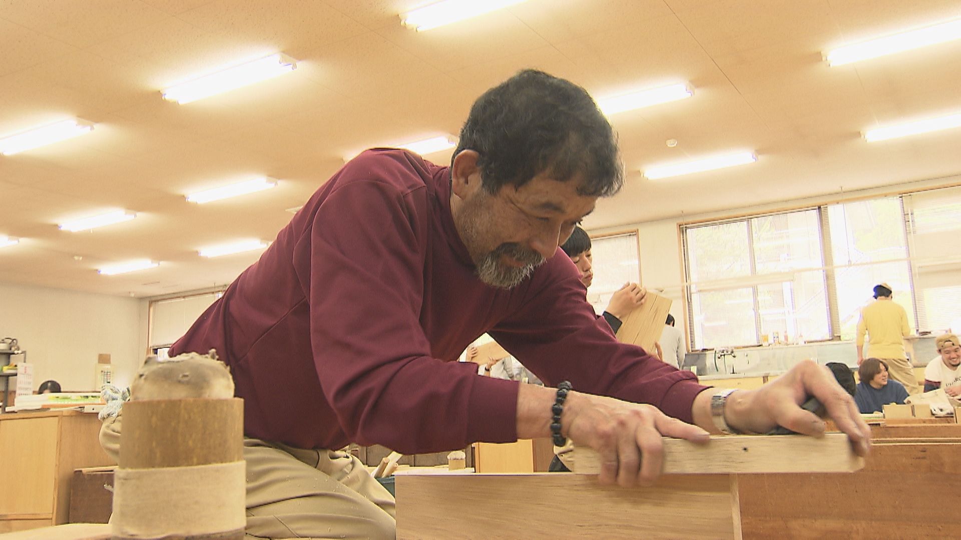 この日、作業場では「鉋(かんな)」の実習が行われていました。