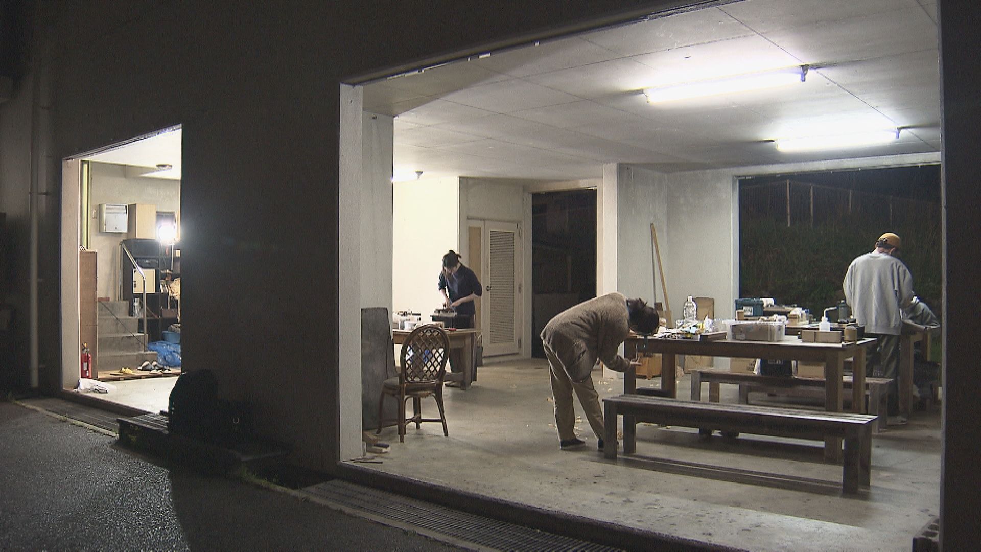 夜7時半(ピロティ作業)、寮でも自主練する訓練生。
