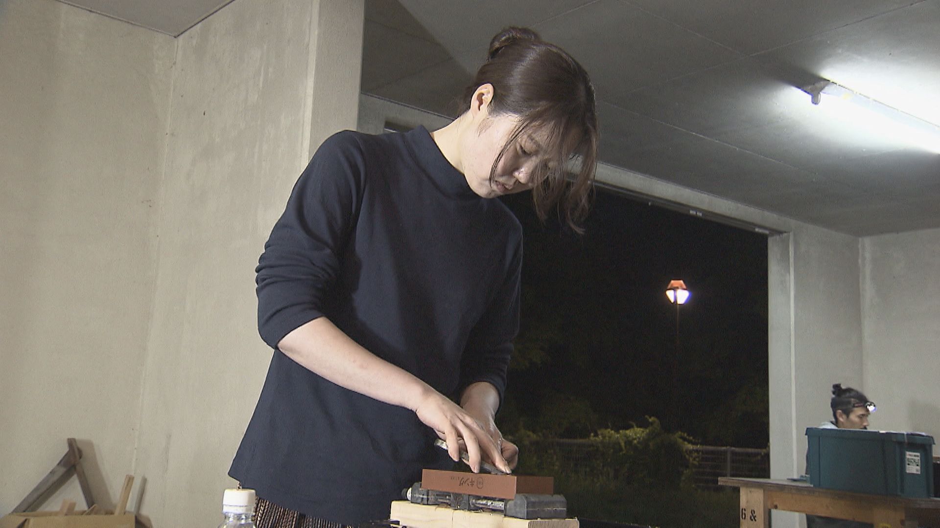 「授業で使っている鉋の研ぎをしていました。1年という短い期間なので時間を有効に使えればと」