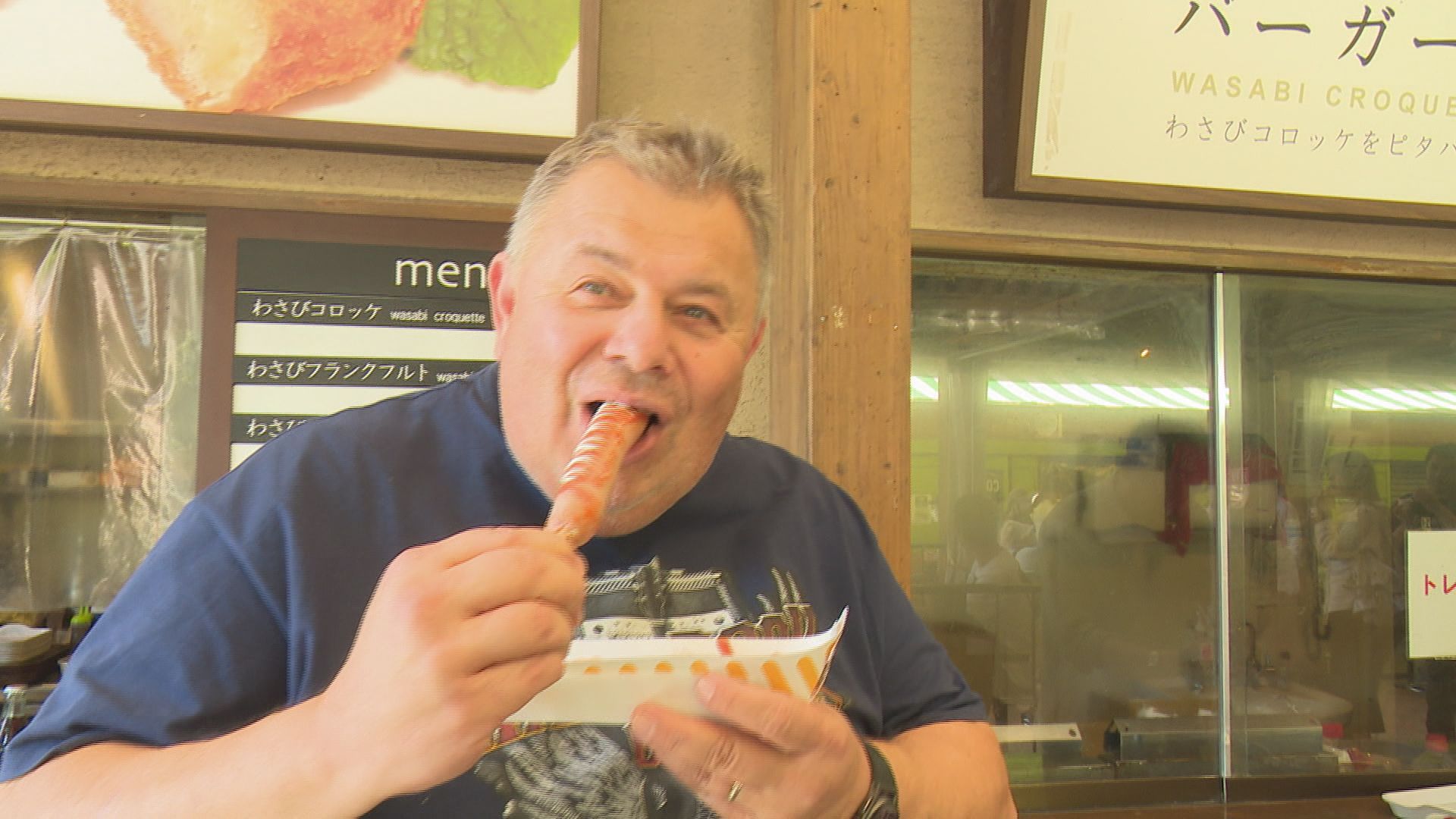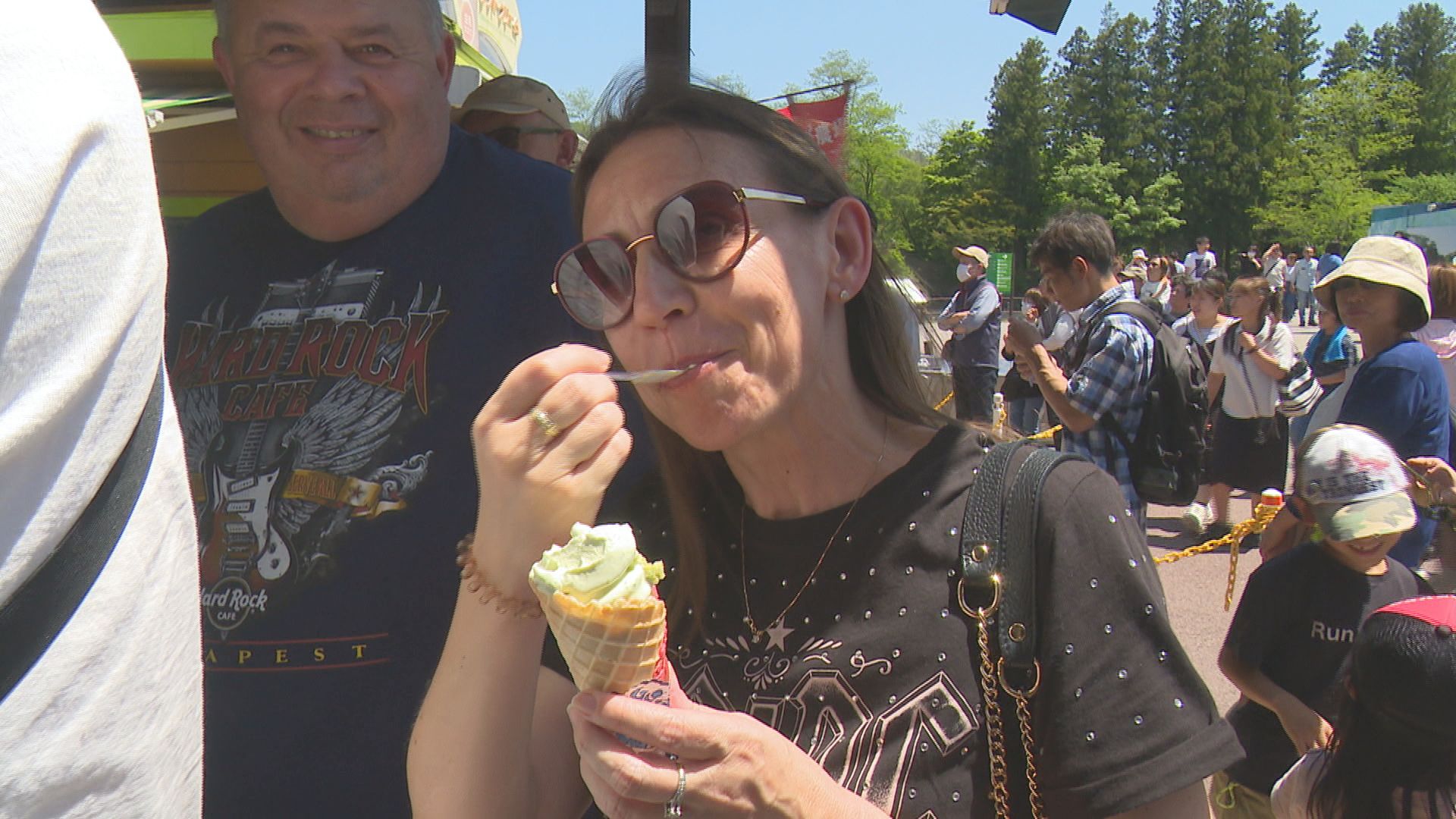 「ワサビの育つ様子を見たことがなくて、どうやって育てられているのか見たかったのとアイスクリームを試したかった。(アイスクリームはどう?)ヤミー、おそしいです」