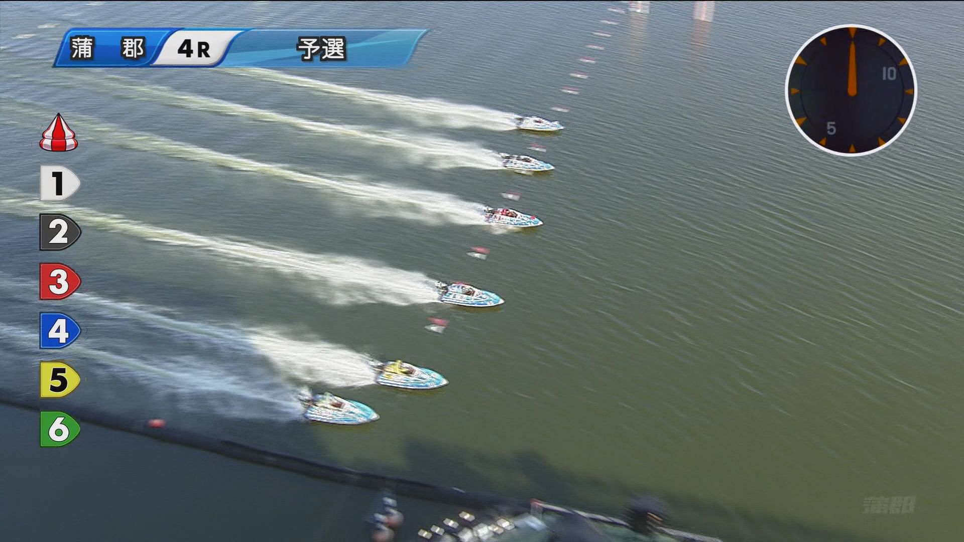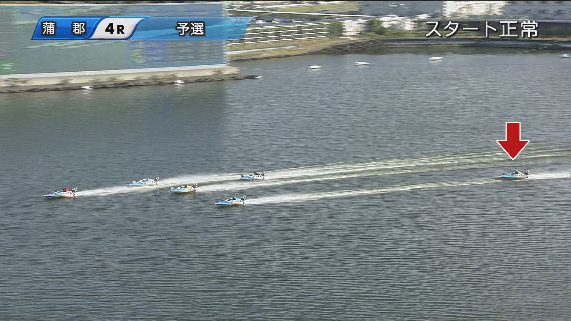 ボートレースは助走スタート。井沢選手、やや出遅れました。
