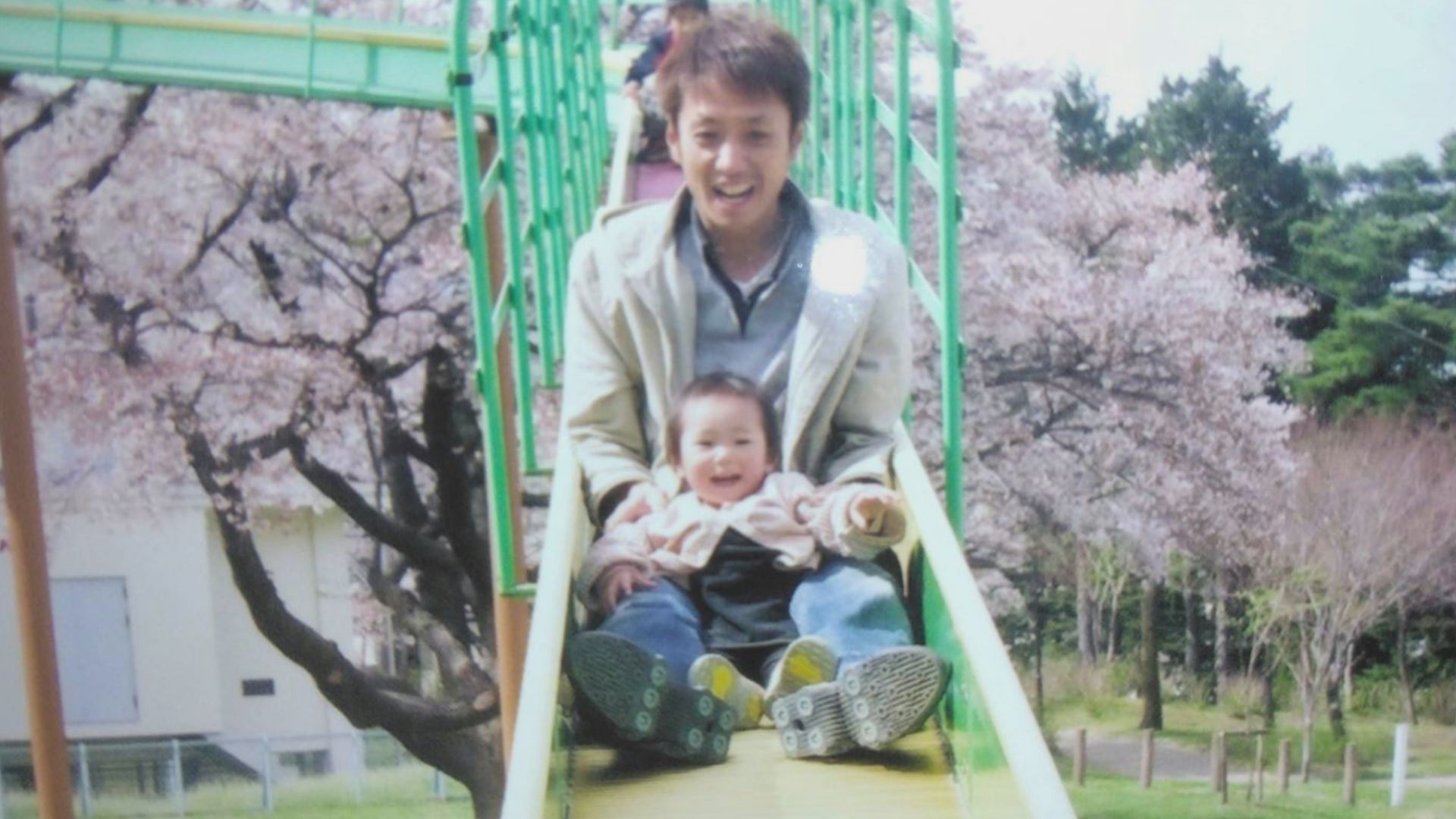 父・寛さんと幼い頃の井沢選手(提供写真)