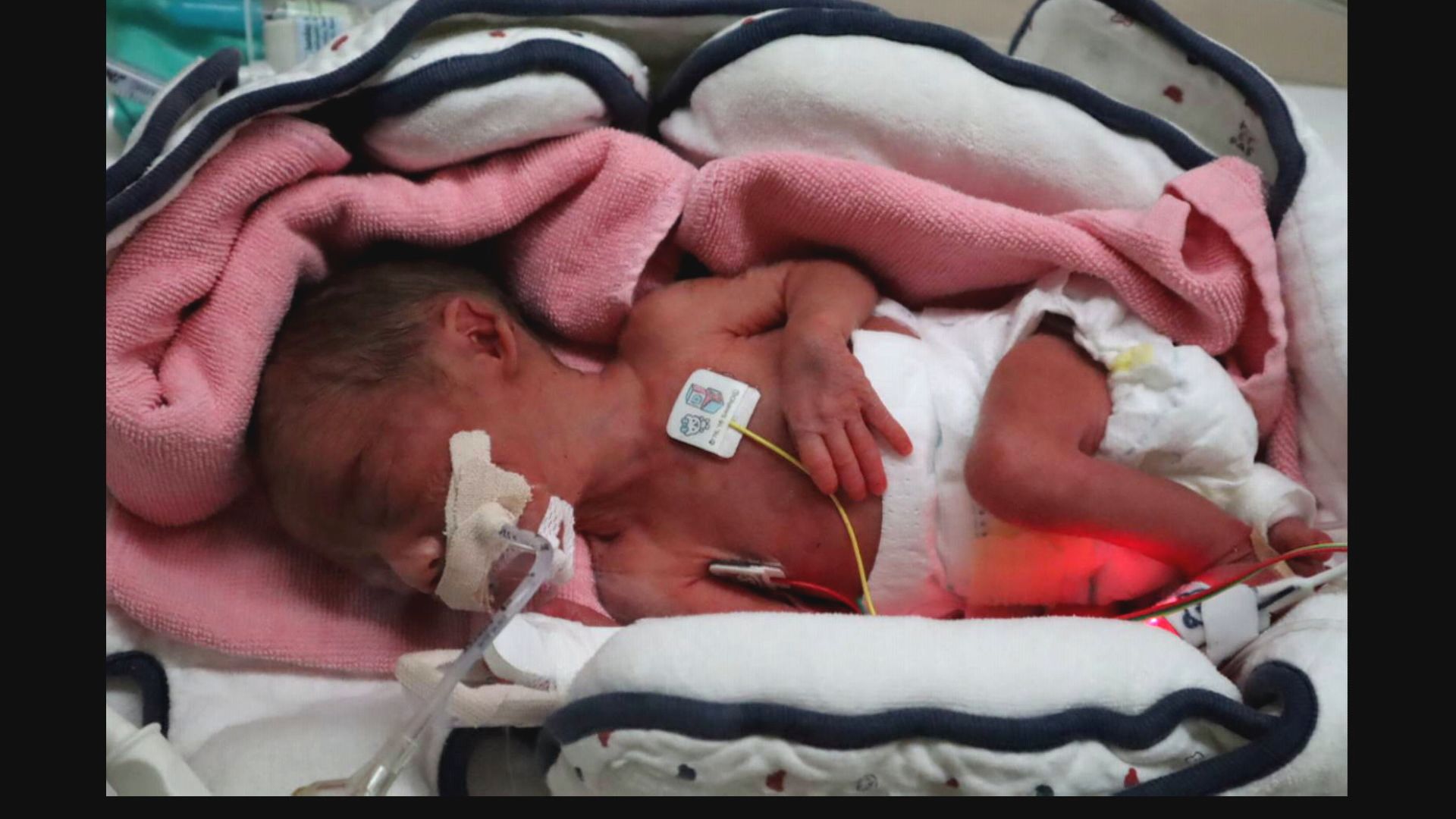 左:体重664gで生まれた吟糸ちゃん/右:体重964gで生まれた智矢ちゃん