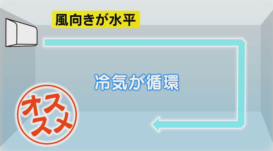次に風の向きについて。斜め下と水平。どちらが節電につながるかと言うとー。