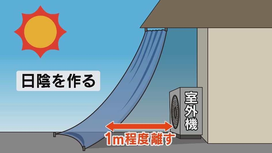 1メートルほど離れたところに日陰を作ると節電効果が