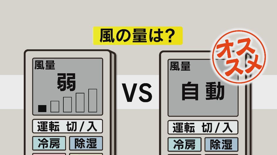 まずは風の量・風量について。「弱」と「自動」ではどちらが節電につながるのでしょうか。