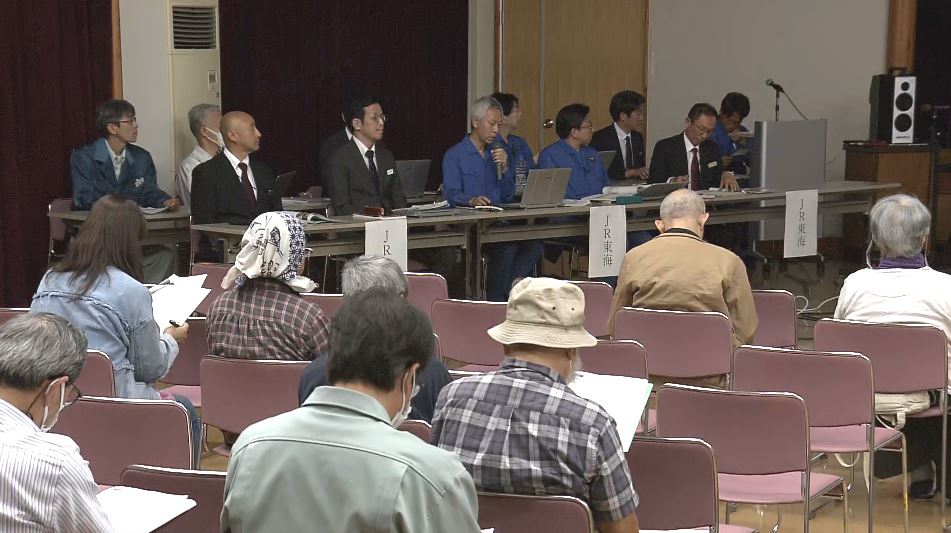 4日夜、大鹿村で開かれたリニア中央新幹線の住民説明会。JR東海が工事の遅れを陳謝しました。説明会は、当初「2027年」としていた品川・名古屋間の開業を3月に断念したのを受けたものです。