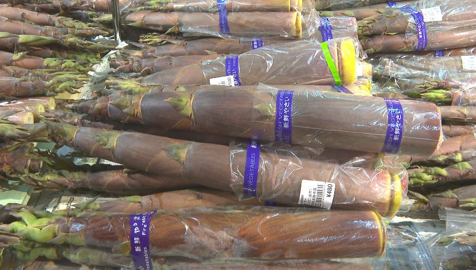 道の駅信州新町。入ってすぐの場所にズラッと並んでいるのは「淡竹」のタケノコです。他の種類に比べて、あくが少なく柔らかいのが特徴。長野市の西部・西山地域は産地の一つでこの時期、道の駅には多くのファンがやってきます。