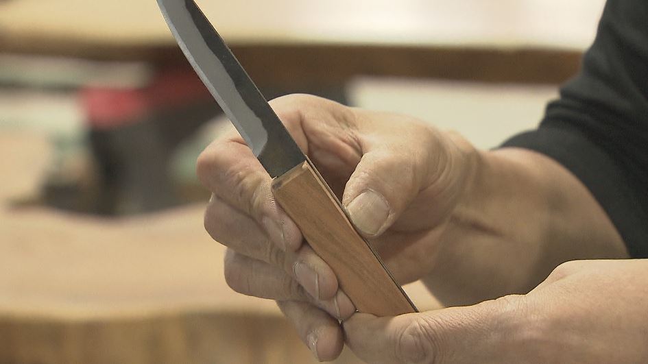 畑山さんが鍛えた「刃」は飯綱町の家具店「ウッドファクター」へ。
