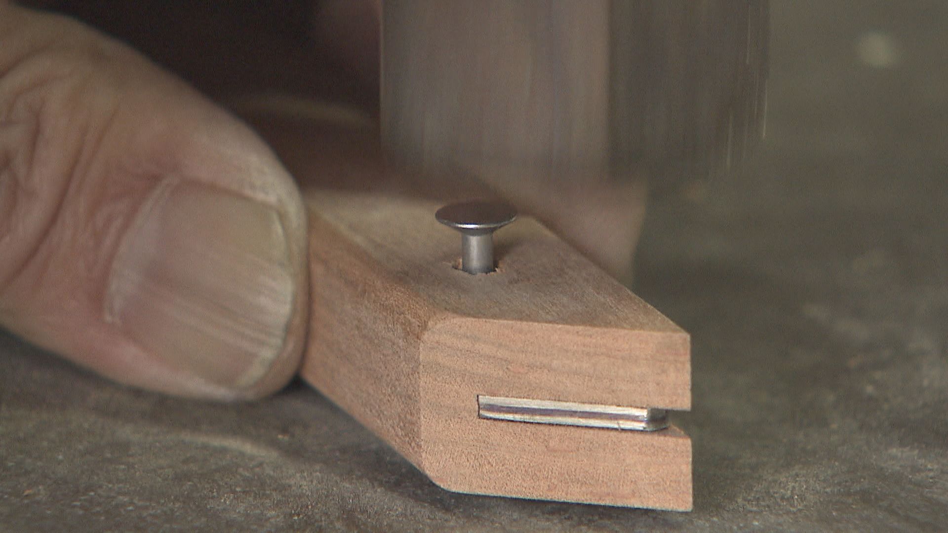 刃と柄を留める「リベット」を打つ