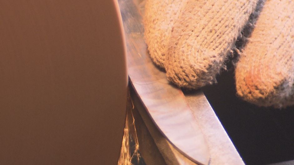 刃と柄を留める「リベット」を打ち、面取りなどを経て大川さんの作業は終了です。