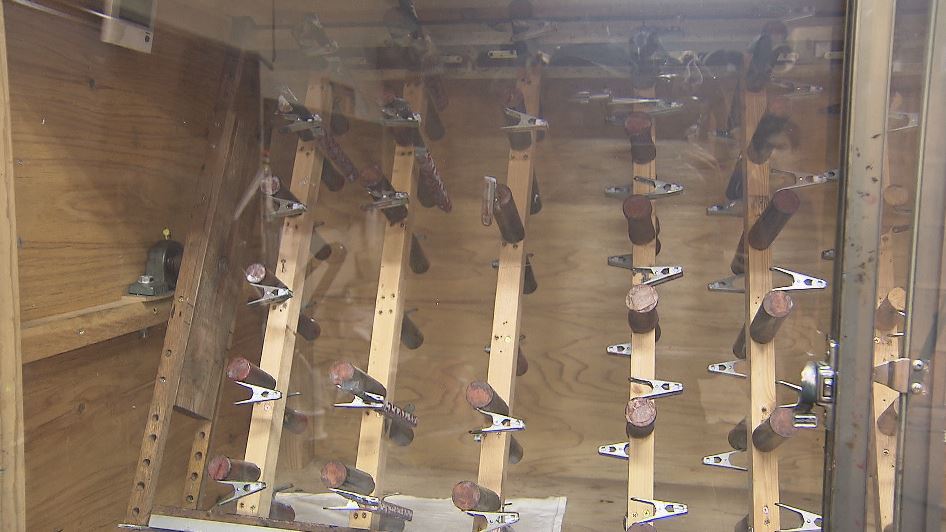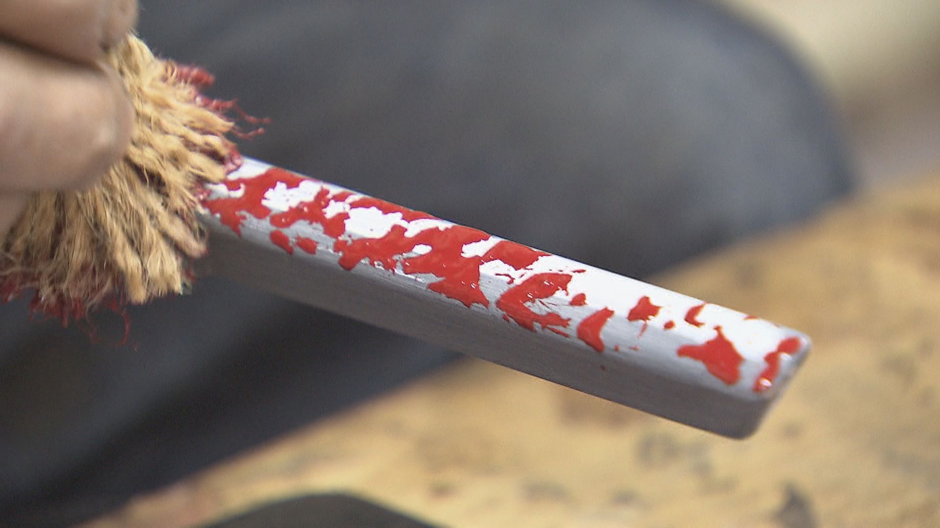 岩原さんは60本のナイフを10種類の異なる色や柄に仕上げることにしました。