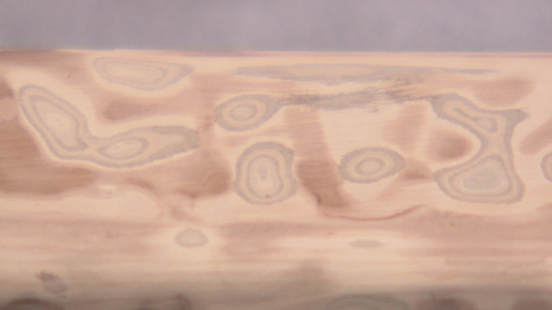 この日の作業は「荒砥ぎ」。12層、塗り重ねた漆を紙やすりで削っていくとー年輪のような模様が浮き出てきました。