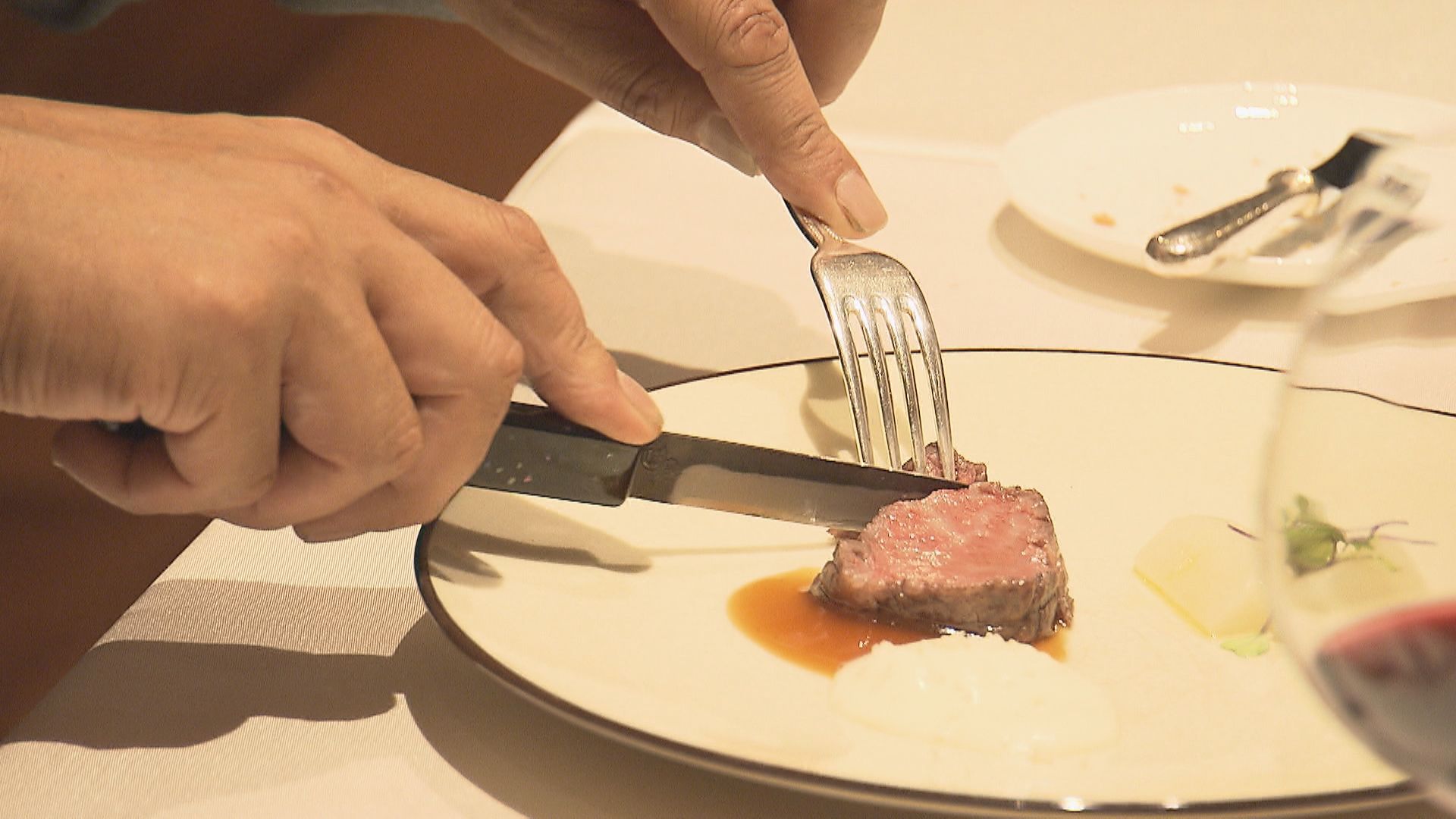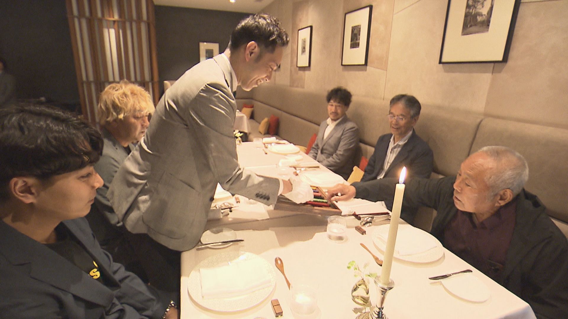 一番初めにナイフを使ってもらおうとこの日、3人の職人と関係者がレストランに招かれました。