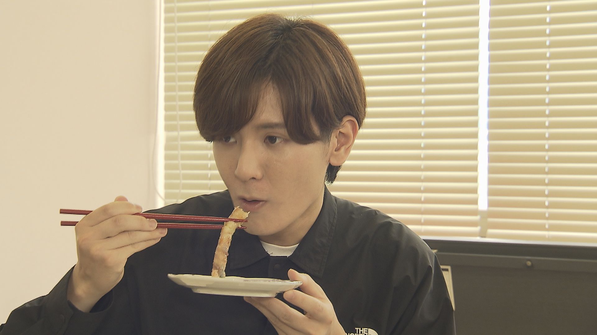 「まずは肉巻きズッキーニからいただきます。歯ごたえがほどよく残っていて、梅のソースとの相性もすごく良いです」