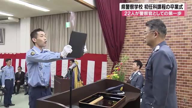 卒業を迎えたのは去年10月に入学し、10カ月間に渡って逮捕術や法律などを学んできた第181期の22人で、鈴木達也県警本部長から卒業証書と辞令が手渡されました。