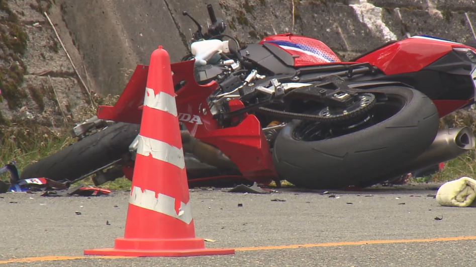 現場は緩やかなカーブで、大型バイクが反対車線にはみ出したとみられています。