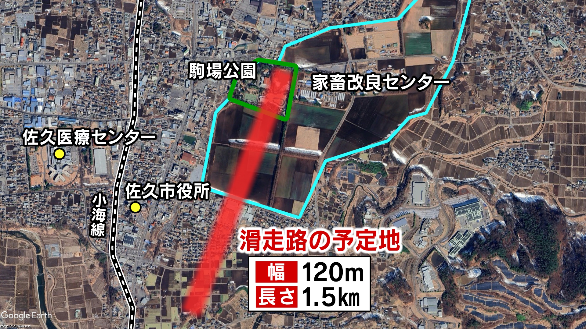 海軍の計画は、種馬所を中心に現在の佐久市駒場公園や住宅地にまたがる長さ1.5キロの滑走路と航空機を隠す地下格納庫を作るというものでした。