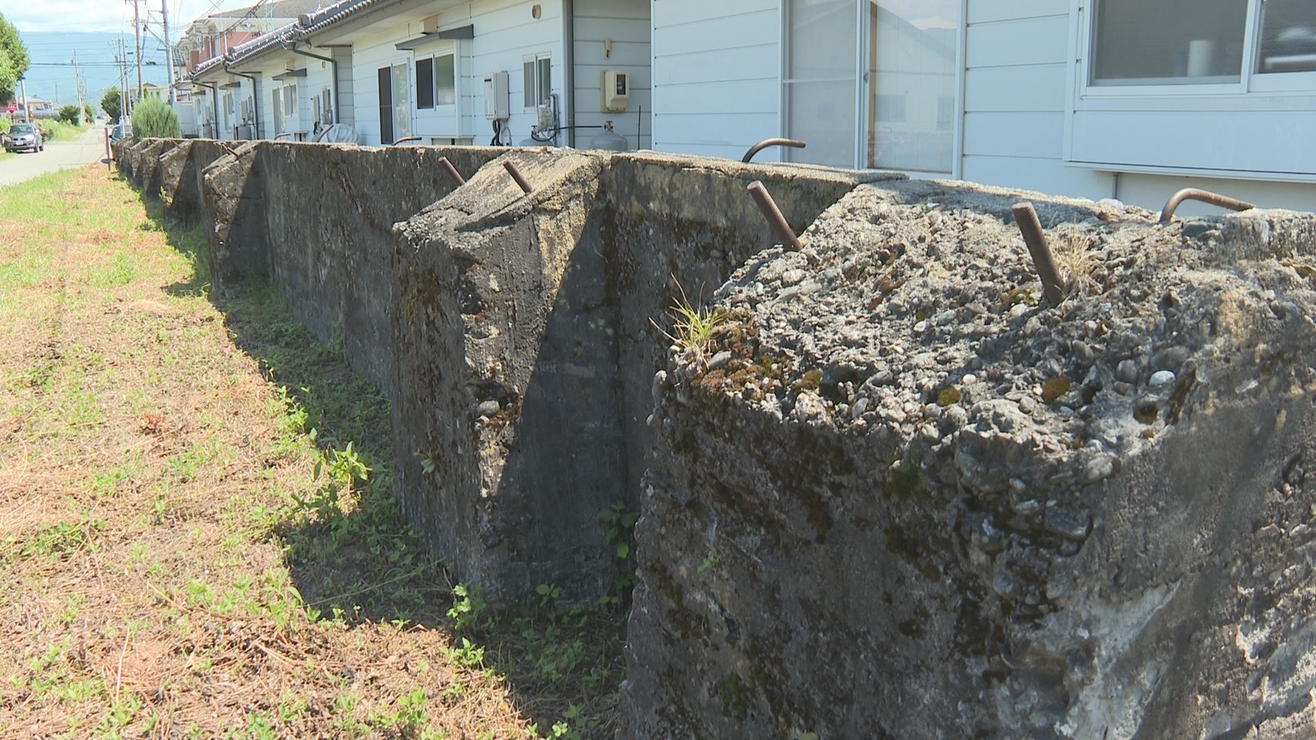長野県伊那市の上の原地区。田園地帯の住宅が並ぶ一角にコンクリートで作られた格納庫の基礎部分が残っています。