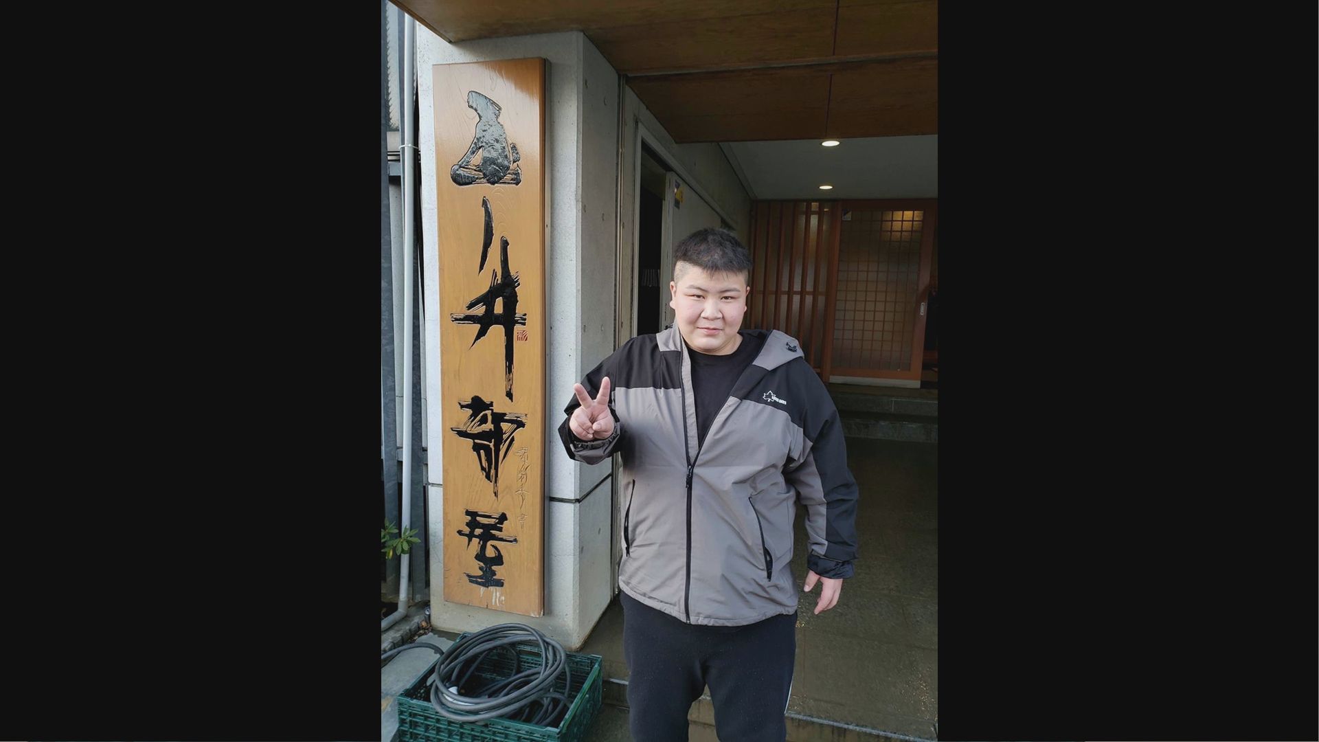 玉ノ井部屋の前で
