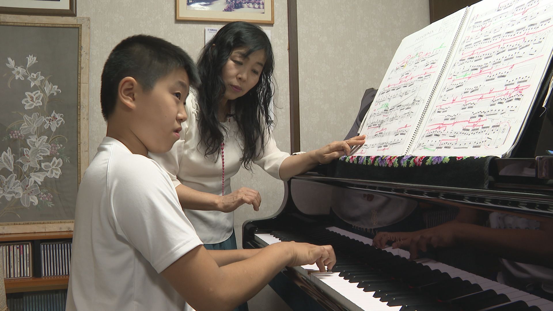 慶太郎さん(手前)を指導するYUMI MUSIC STUDIO・小池由美さん(8月26日)