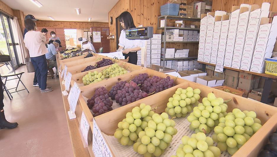 こちらの農園では今月いっぱいは予約不要でブドウ狩りが楽しめる他、さまざまなブドウを購入でき贈答用にも重宝されています。