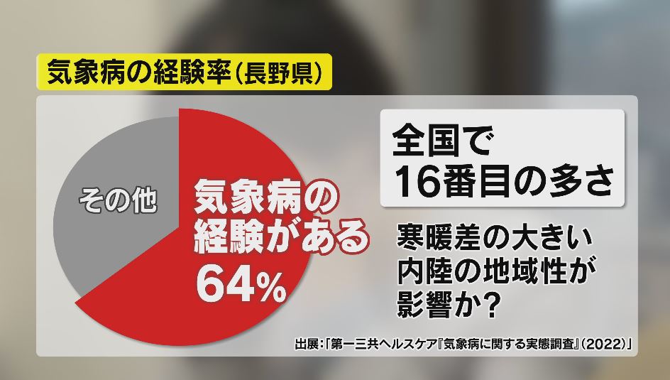 医薬品メーカーの第一三共ヘルスケアが2022年実施したアンケート調査によると、県内では64%の人が「気象病の経験がある」と回答しました。
