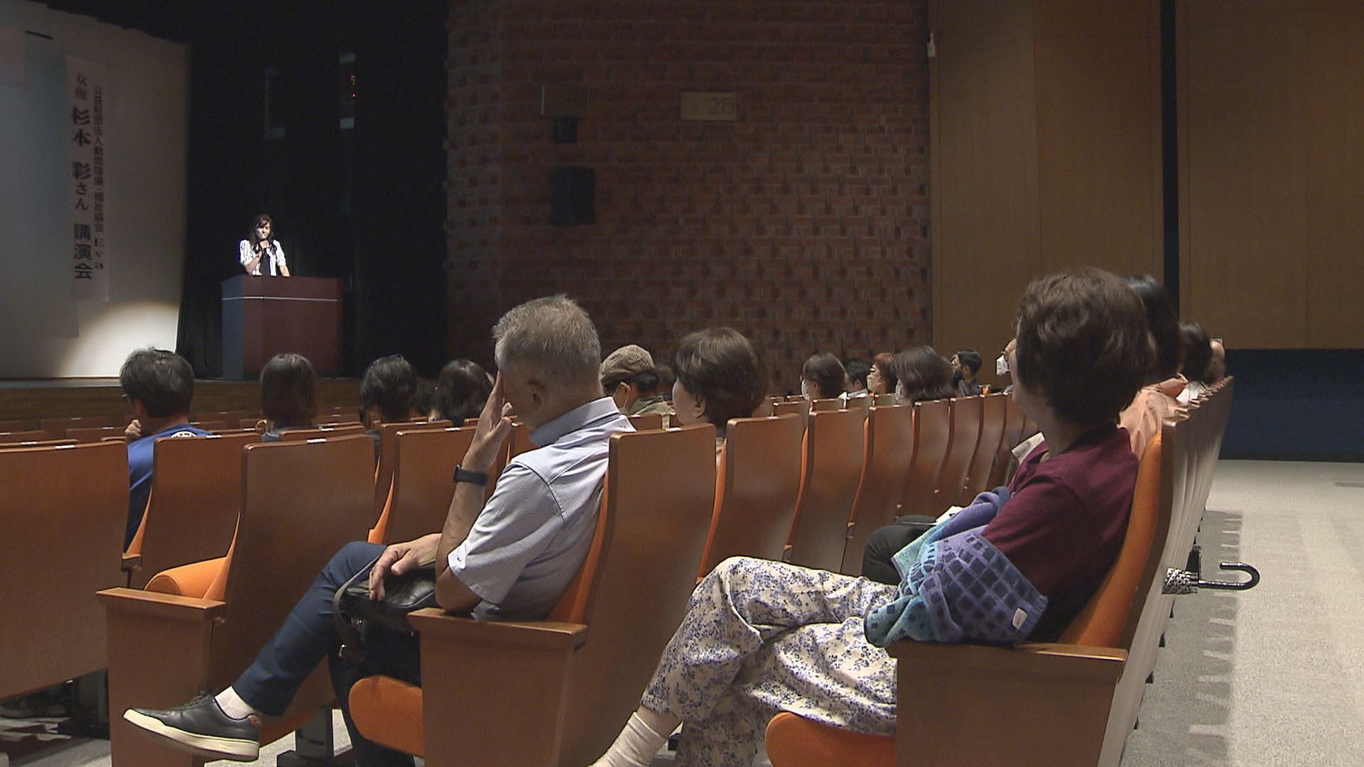 「動物との共生」をテーマに講演した杉本彩さん(水戸市)