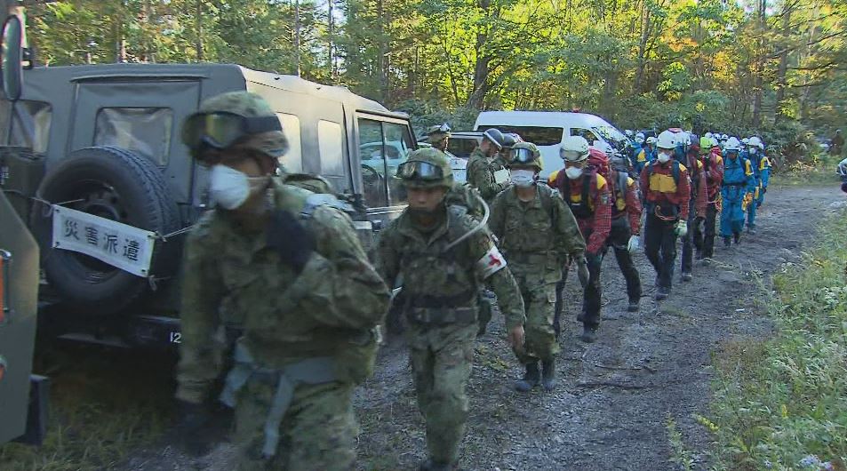 発生から20日間でのべ1万5000人余りが活動し、犠牲者57人を麓に搬送しました。