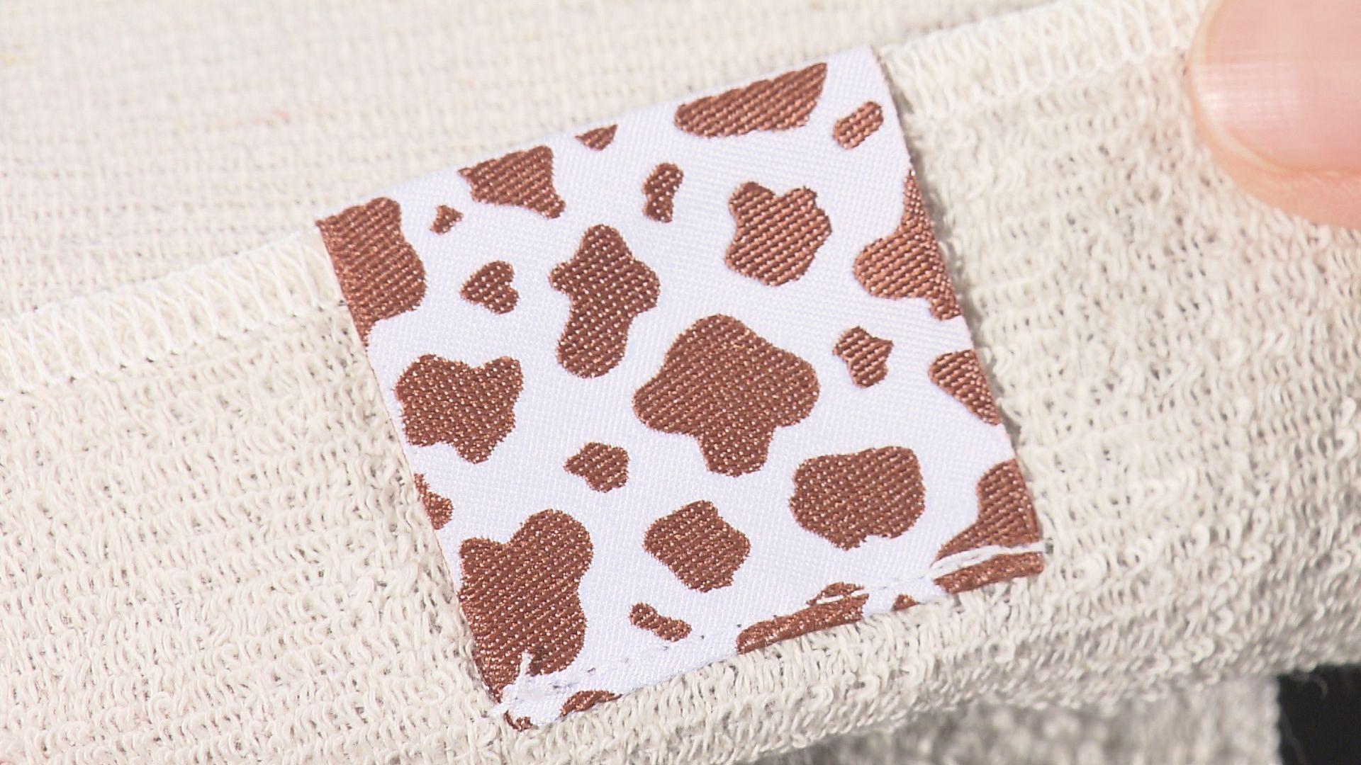 「こだわりました。パッと見たときに、『かわいい』って思ってもらえるやつにしなきゃ手に取ってもらえないので、(タグの)裏の牛柄もこだわりました」