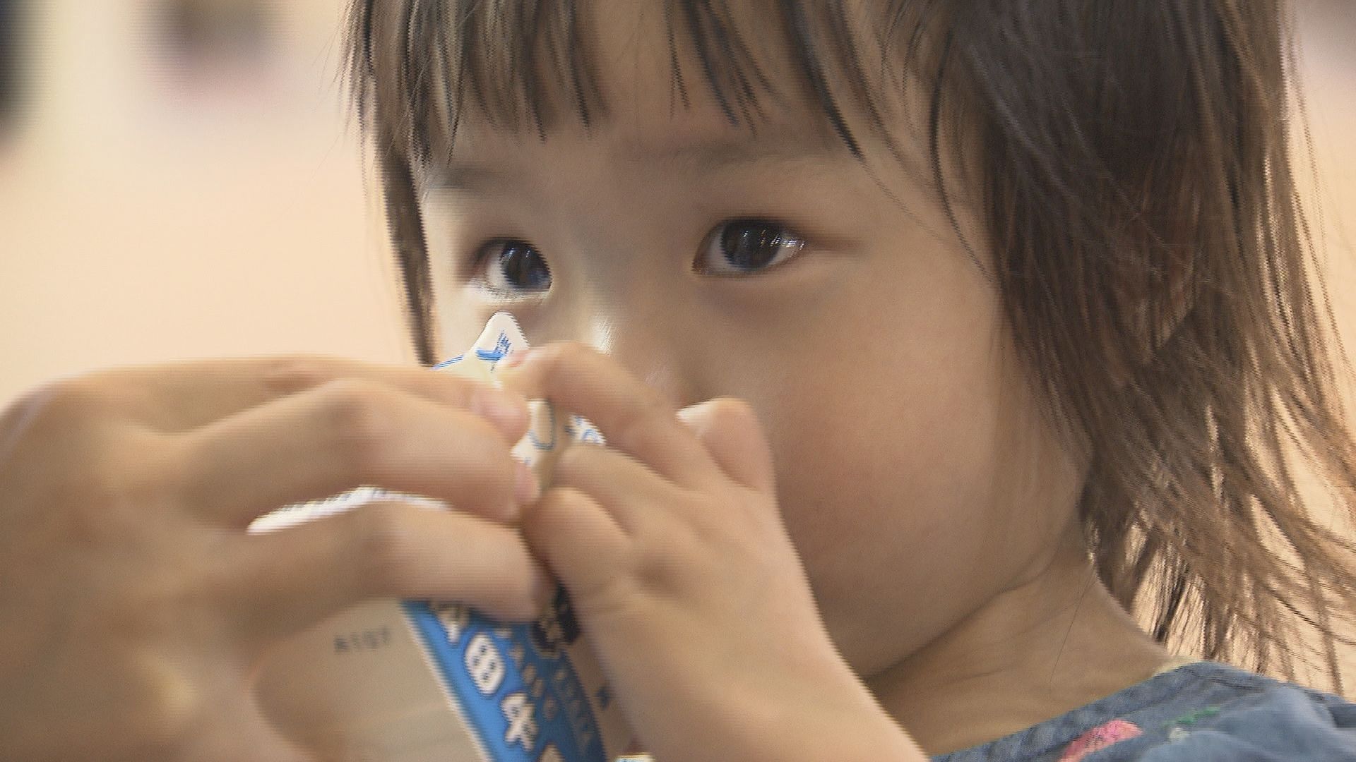 紙パック牛乳を飲む子ども