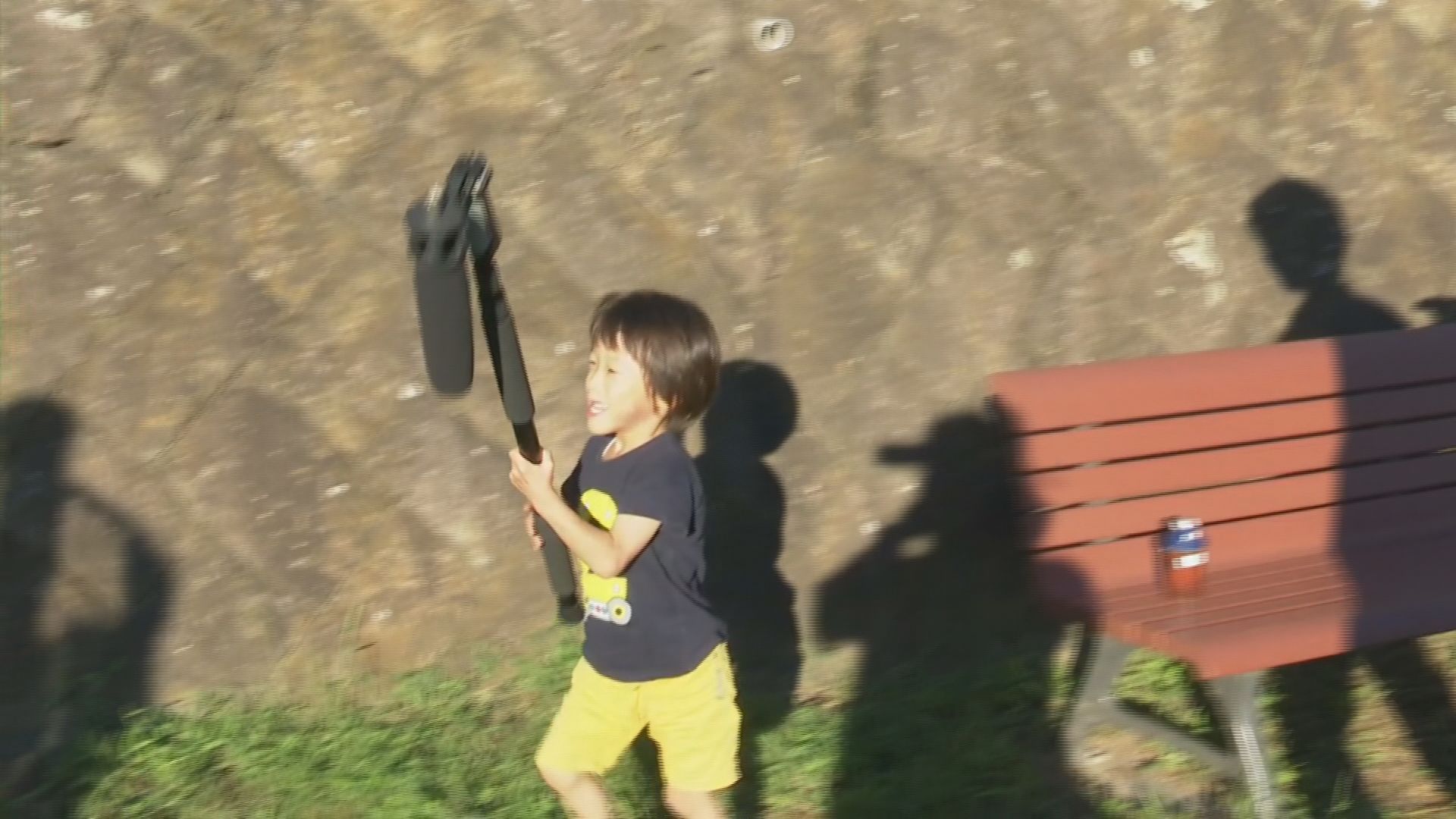 取材班の機材で遊ぶ竜佑ちゃん