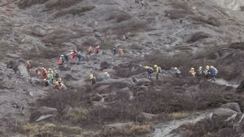 「26日は本当にこんなきれいな紅葉真っ盛りの時期でした。灰で埋まってしまって、山が灰色になって、登山者の服の色しかないんです」