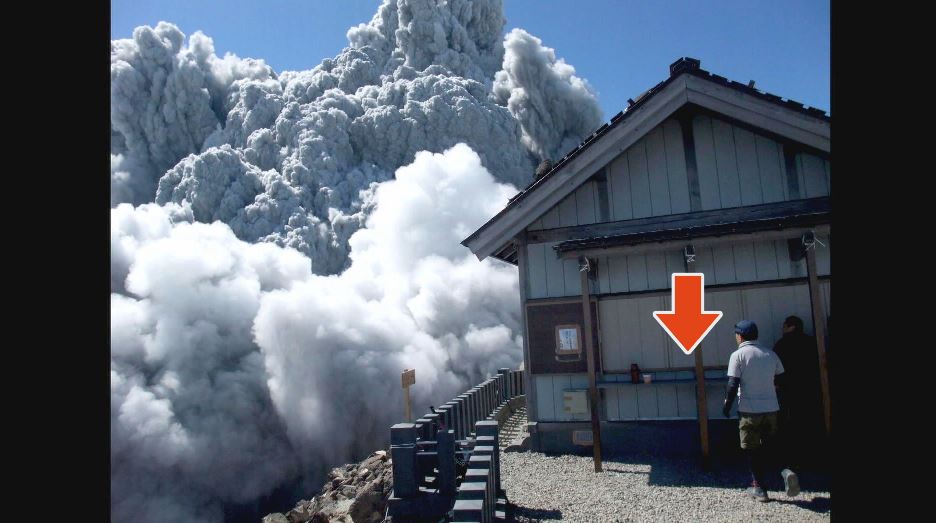 噴煙で真っ暗になる中、里見さんは祈祷所のカウンターの下に逃げ込みました。