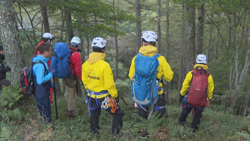 急な斜面を捜索する警察官や消防隊員。松本市入山辺の山林では、9日からキノコ採りをしていた75歳の男性が行方不明となっています。10日、朝6時半ごろから約30人態勢で捜索が行われました。