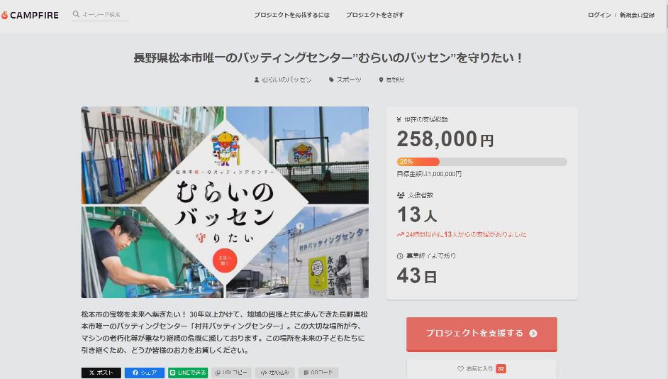 「松本平の野球愛好家にとっては、言い方は大げさかもしれないんですけど、聖地のような存在であると思いますので。共感していただける方に、寄付という形でいただきたいというのはもちろんなんですけど、このバッティングセンターに来ていただくことがとてつもなく大きな支援に繋がりますので、そういったものにつながっていければいいなという思いは強いです」