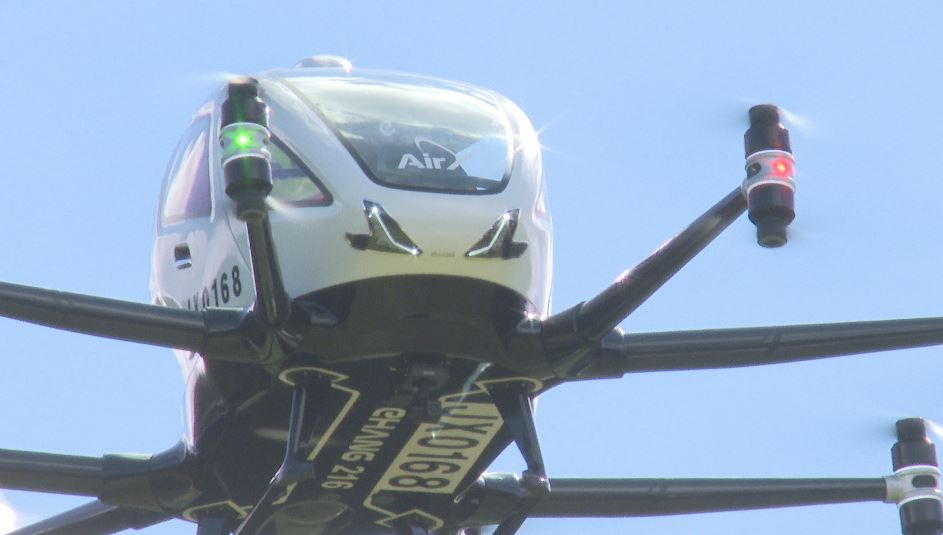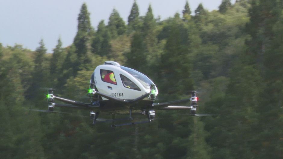 航空局へ許認可手続き中で、まだ人を乗せて飛ぶことはできませんが、11日は県内で初めてとなるデモフライトが行われました。