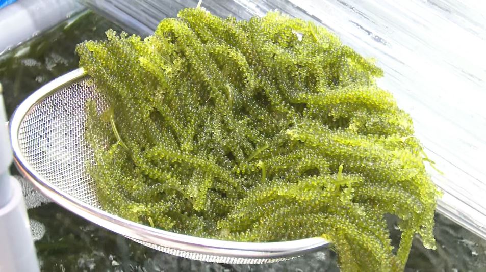 温暖な海で育つ海藻の一種・海ぶどう。プチプチとした食感から「グリーンキャビア」とも呼ばれています。