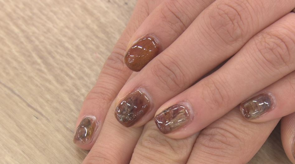 髪はいわゆる「アッシュカラー」。爪には茶色の「ネイル」も。