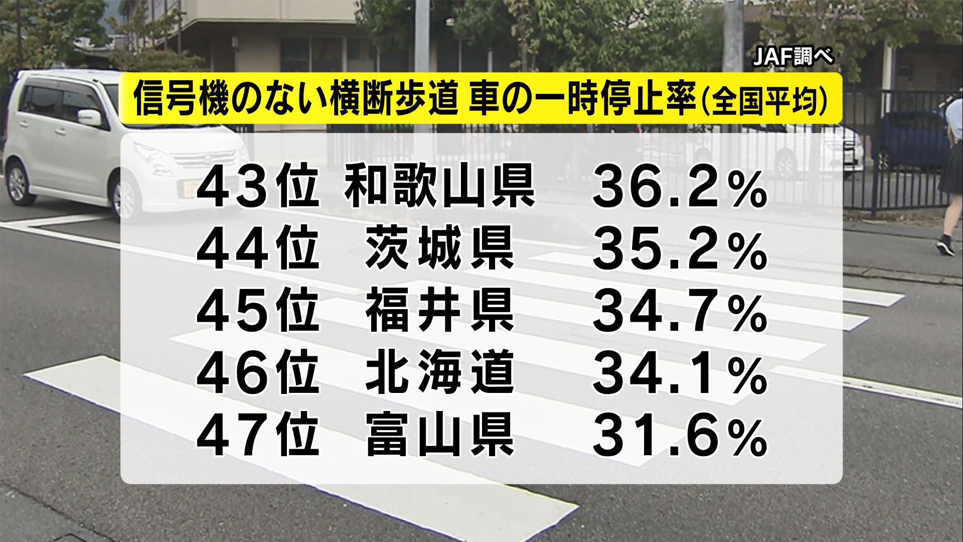 信号機のない横断歩道での車の一時停止率(JAF調べ)
