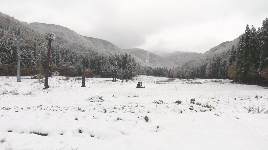 野沢温泉スキー場のオープンは11月30日の予定。既にリフトなどの設備は準備万端で、あとは雪と寒さを待つだけです。あと10日、人工降雪機も使ってゲレンデを整えます。
