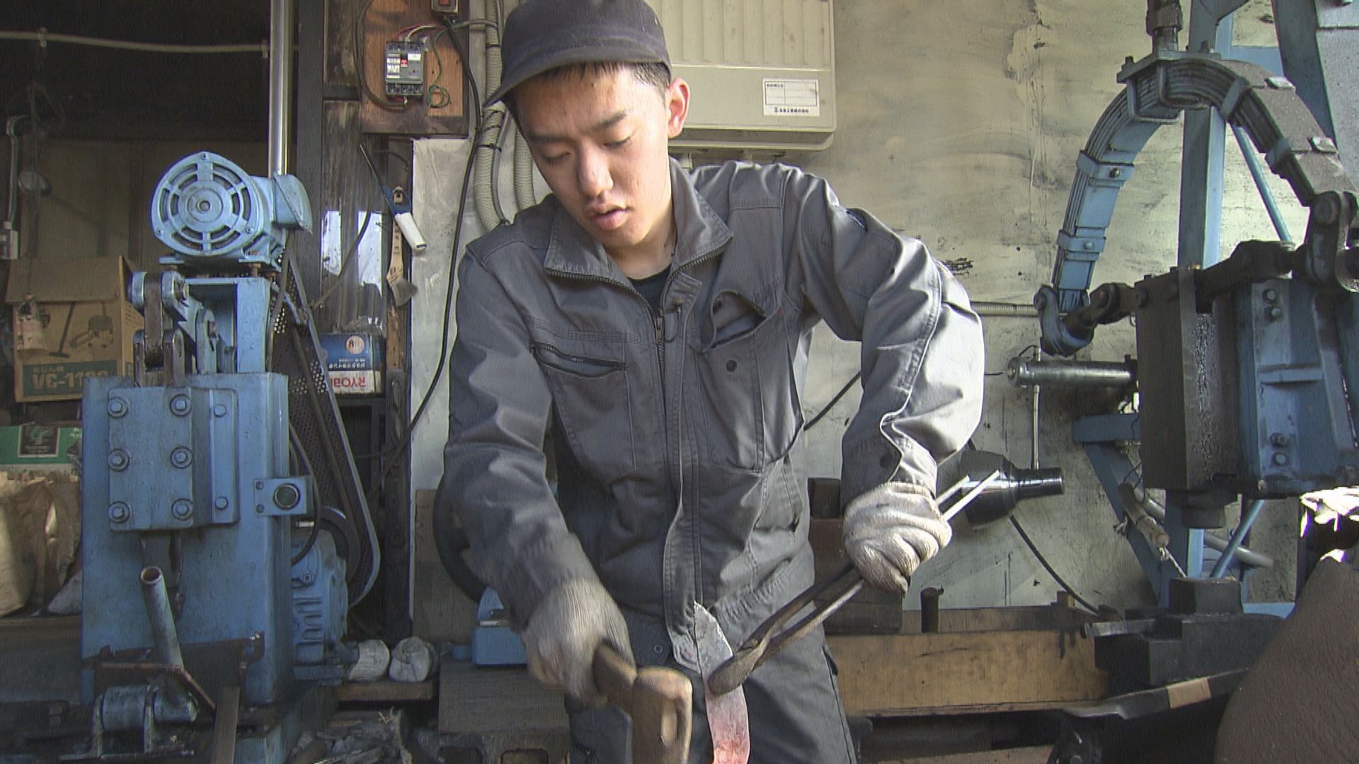 真っ赤に焼けた鋼。金槌を打ち付けるのは大木島蓮さん18歳。松川町の出身で、この春、高校を卒業したばかりです。