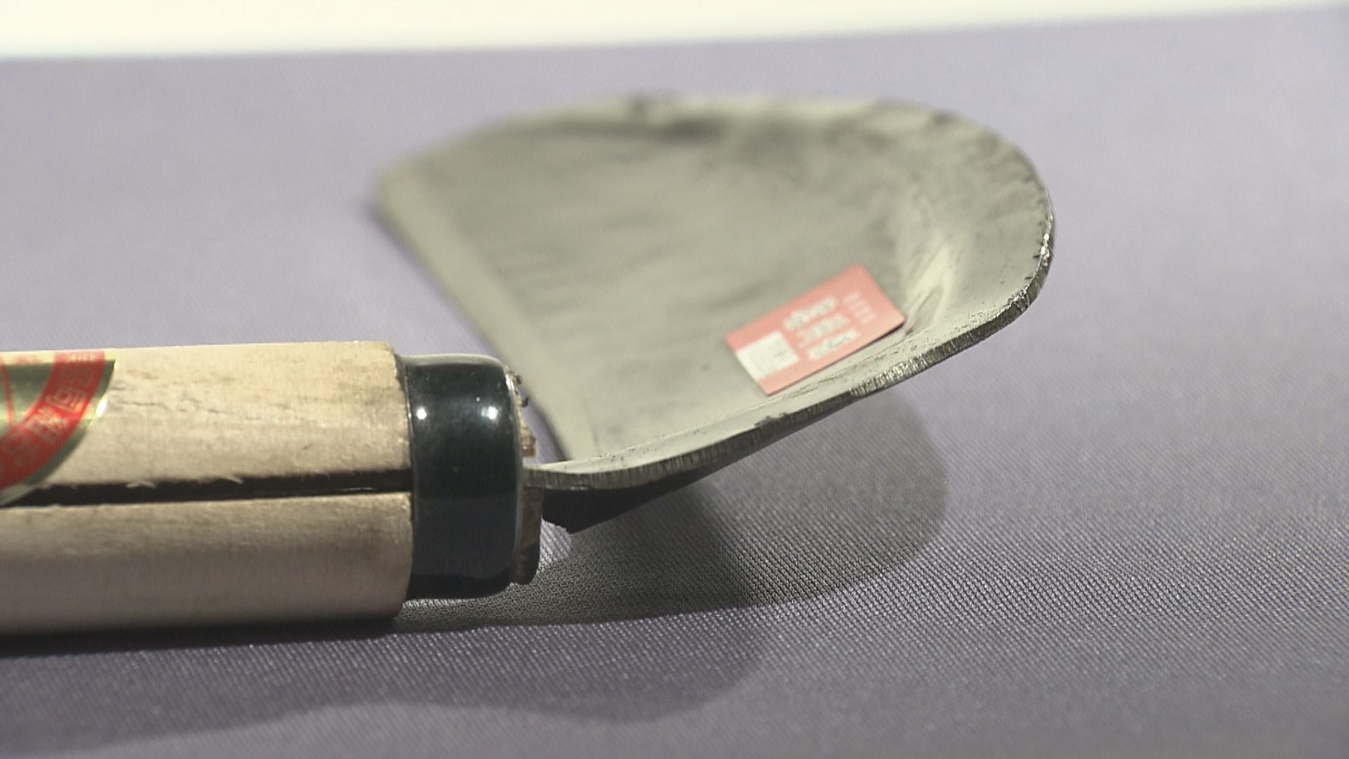 「(芝付けは)柄が刺さるところが角度ついてる。だから刃元から草に当たって切れやすい、使いやすい」