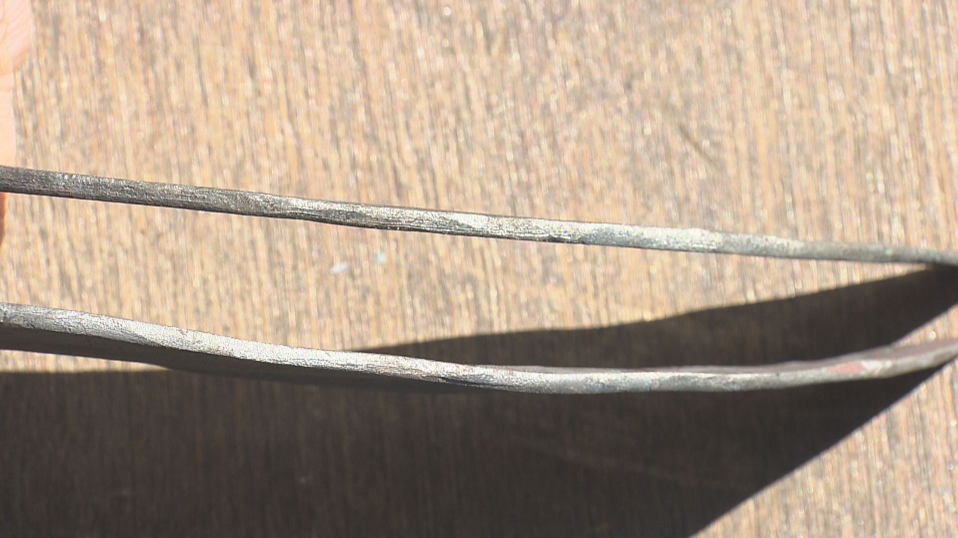 「昔ながらのやり方で、『コミ曲げ』というのをやってみます。しっかり持って、目的の所狙って、よしここだって決めたら、位置が難しいんです。この位置で全然鎌が違くなっちゃう」