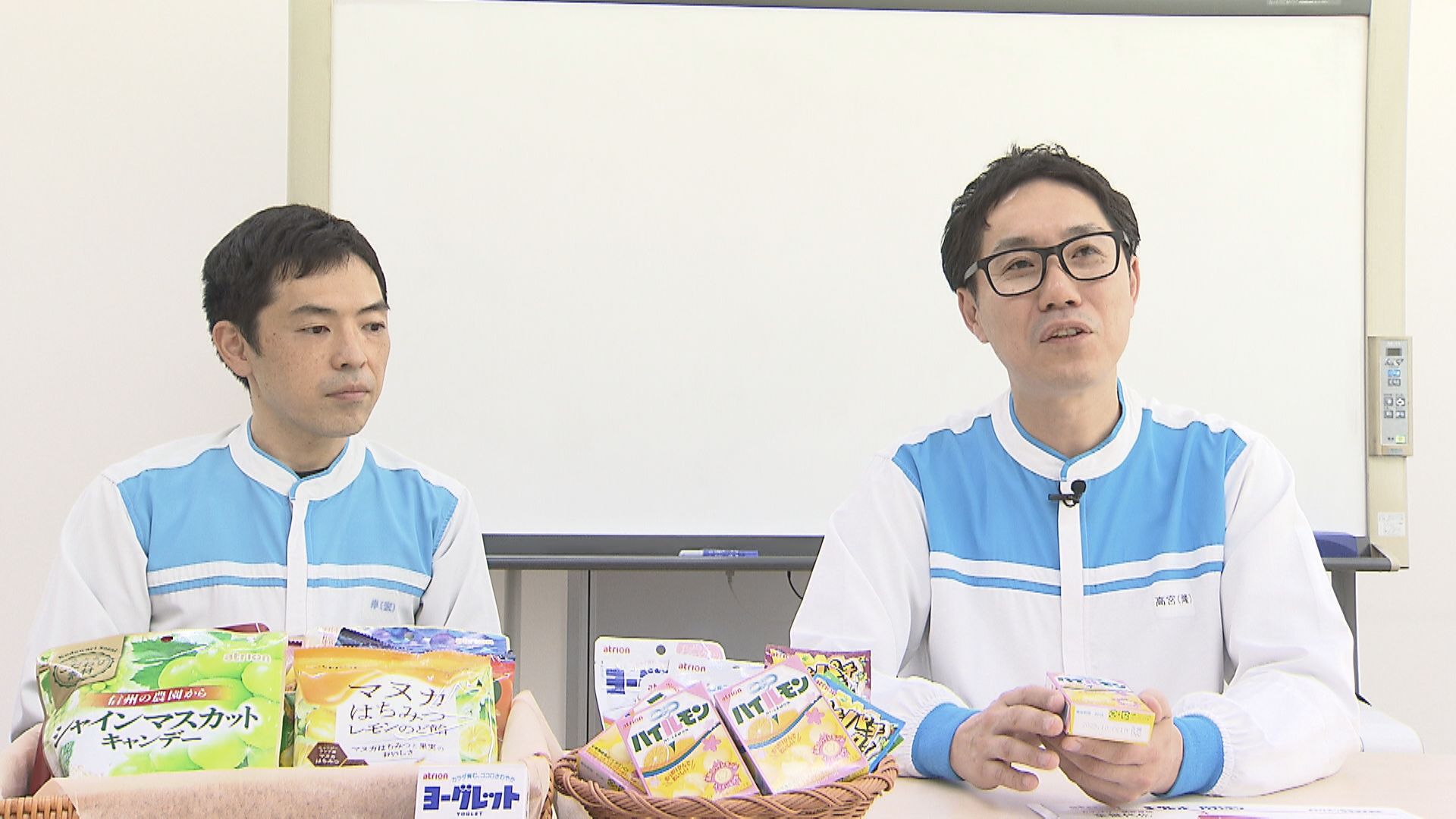 左:アトリオン製菓 デザイン担当・岸宏さん :右:生産企画部・高宮隆一部長